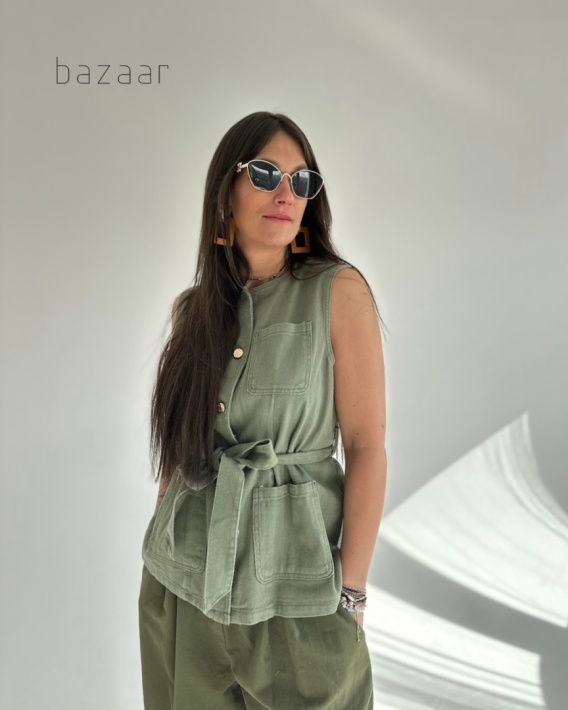 • Dwie praktyczne, naszywane kieszenie wykończone modnymi guzikami.