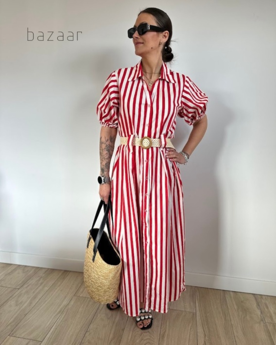 Poczuj powiew letniej świeżości w sukience Carmen, która łączy klasyczną elegancję pionowych pasów z niezwykłym komfortem naturalnej tkaniny. Wykonana w 100% z wysokogatunkowej bawełny, pozwala skórze swobodnie oddychać nawet w najbardziej upalne dni, zapewniając Ci uczucie lekkości przez cały dzień. Jej przemyślany krój z akcentem na bufiaste rękawy dodaje sylwetce nowoczesnego charakteru, a długość maxi sprawia, że każda stylizacja nabiera wyjątkowego, kobiecego wdzięku.