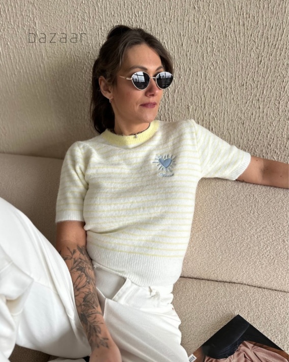 Wprowadź do swojej garderoby odrobinę słońca i beztroski dzięki temu uroczemu sweterkowi w paski. Wykonany ze szlachetnej mieszanki wiskozy i wełny, zachwyca niezwykłą miękkością i "pluszową" fakturą, która przyjemnie otula skórę, nie powodując gryzienia. Klasyczny fason z krótkim rękawem zyskał niepowtarzalny charakter dzięki pastelowym prążkom oraz słodkiemu detalowi w postaci haftowanego serduszka na piersi. Dostępny w trzech wersjach kolorystycznych – energetycznej żółci, romantycznym różu i świeżym błękicie – stanowi idealne uzupełnienie wiosennych stylizacji z białymi spodniami czy jeansami.
