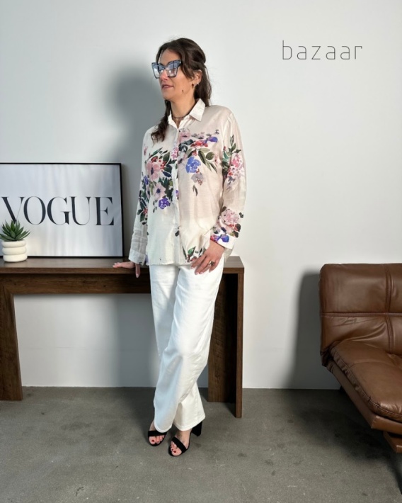Pozwól sobie na odrobinę romantyzmu z tą eteryczną koszulą, która zachwyca malarskim motywem kwiatów na śmietankowym tle. Wykonana ze szlachetnego połączenia bawełny i wiskozy, jest niezwykle delikatna, przewiewna i przyjazna dla ciała, gwarantując uczucie świeżości przez cały dzień. Jej lekka, subtelna struktura miękko opływa sylwetkę, nie krepując ruchów, a klasyczny krój z kołnierzykiem dodaje jej elegancji. To model, który wprowadzi wiosenny klimat do Twojej szafy, doskonale komponując się z białymi spodniami czy klasycznym denimem.