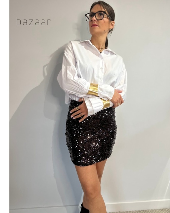 Efektowne wykończenie: Tysiące czarnych cekinów dających efekt "blink",